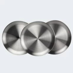 Assiette Plate De Camping | Diamètre Env. 23 Cm | Acier Inox | 3 Assiettes