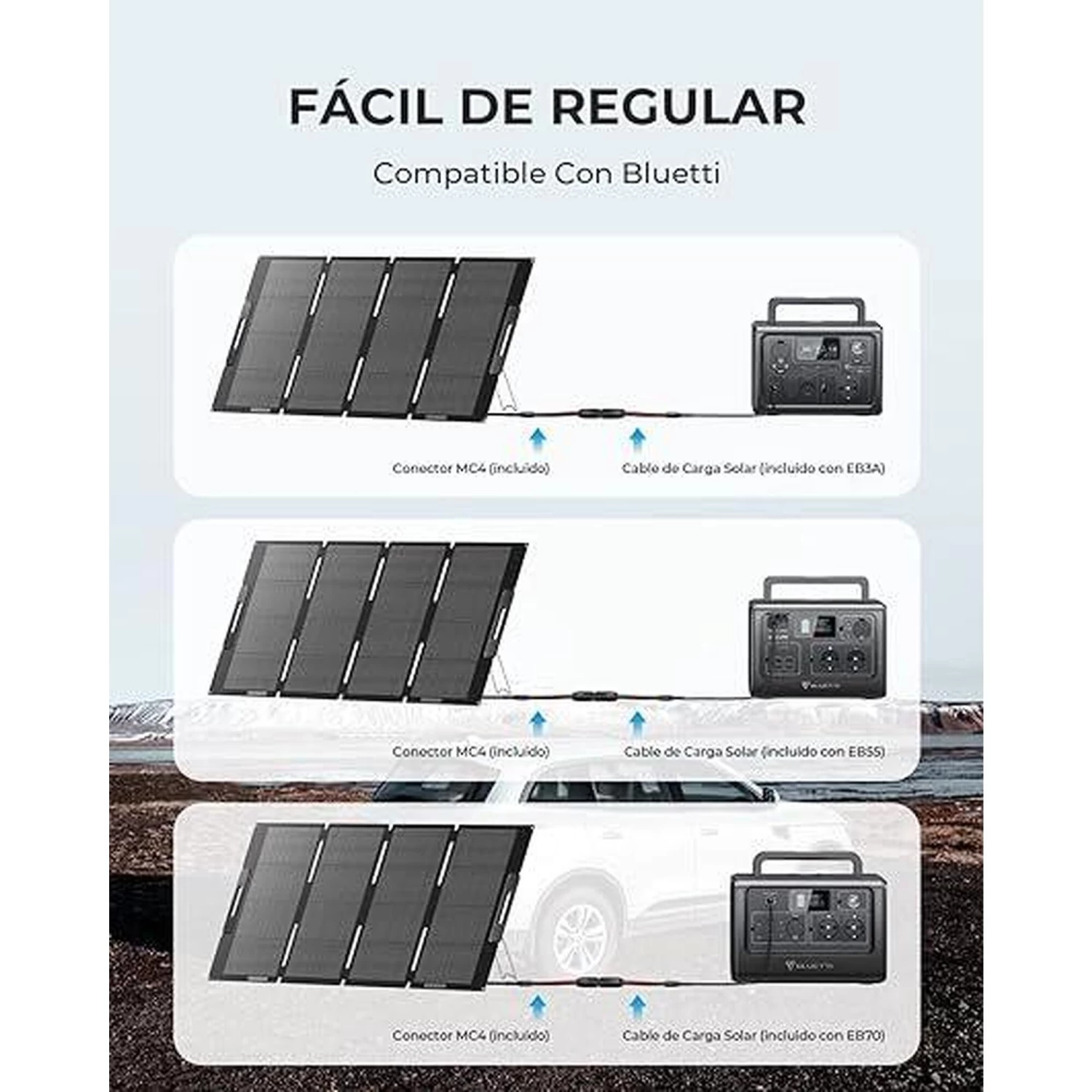 BLUETTI Panneau Solaire MP200, Panneau Solaire 200W pour Centrales Électriques EB3A/EB55/EB70/AC200P/AC200MAX/AC300, Support Réglable, Pliable et Portable pour Camping, Jardin, Voyage