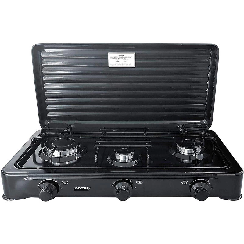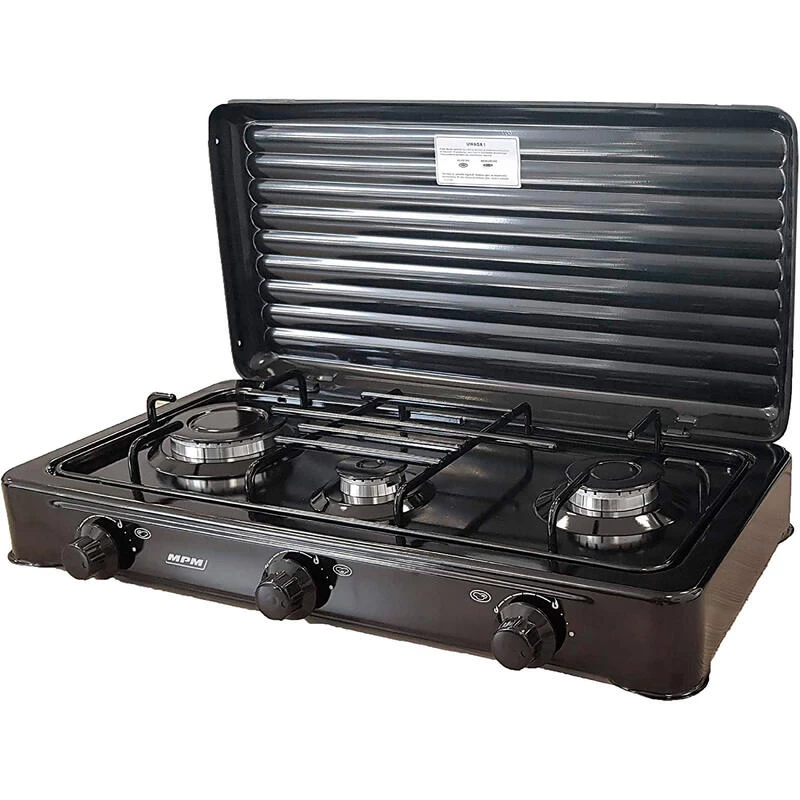 Le réchaud à gaz portable est idéal pour cuisiner ou réchauffer vos repas lors de vos voyages en plein air ou en camping. Il est pratique et compact, avec 3 brûleurs réglables et un couvercle pliable.