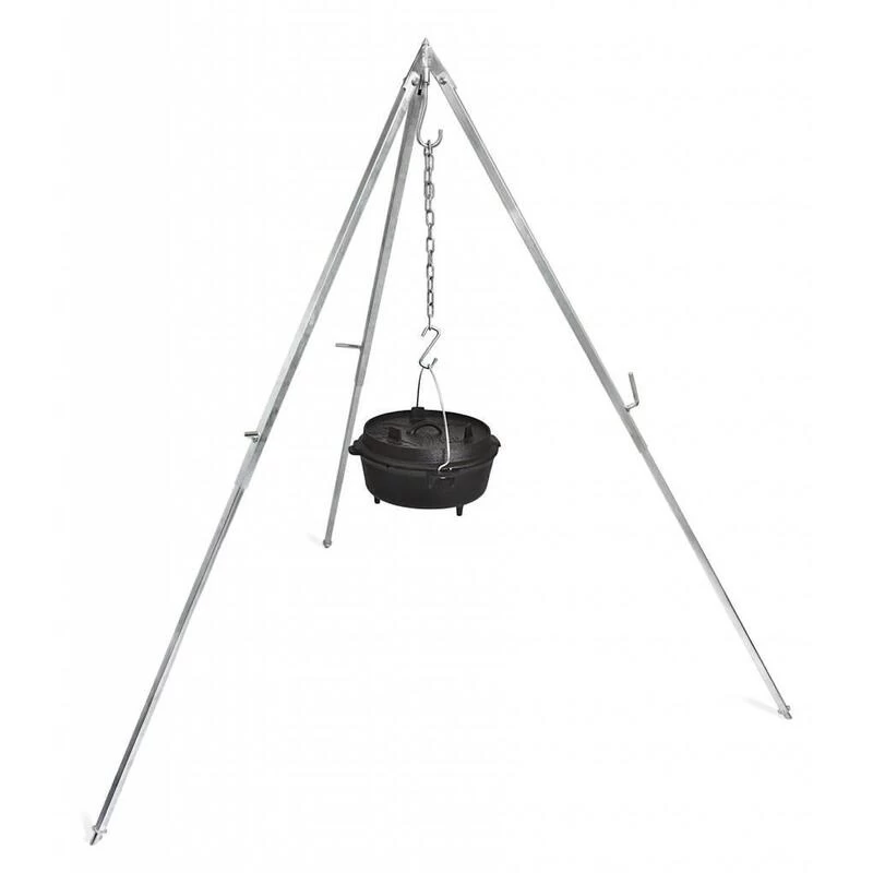 Tripode à 3 pieds robuste pour suspendre facilement et de manière stable votre faitout au-dessus de votre feu de camp. Hauteur réglable de 88 à 159cm, poids de 4,1kg. Charge maximale de 40kg.