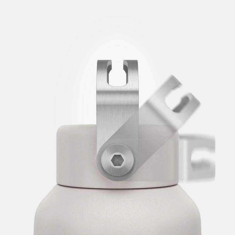 Le bouchon est muni d’une anse large et mobile qui permet de le porter à la main ou de l’accrocher grâce à un mousqueton.